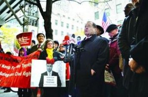 ইমিগ্রেশন বিল দাবিতে তিন দিনের অনশন কর্মসূচির প্রাক্কালে ১১ মাইল দীর্ঘ পদযাত্রার উদ্বোধনী বক্তব্য দিচ্ছেন কংগ্রেসম্যান জেরাল্ড নেদলার