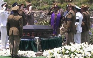 তাকে সমাহিত করার সময় কবরস্থানে ৪৫০ জন উপস্থিত ছিলেন। এর মধ্যে আত্মীয়স্বজন, রাজনৈতিক নেতৃবৃন্দ, প্রিন্স চালর্স, যুক্তরাষ্ট্রের নাগরিক অধিকার কর্মী রেভারেন্ড জেসে জ্যাকসনসহ বিদেশী অতিথিবৃন্দ উপস্থিত ছিলেন।