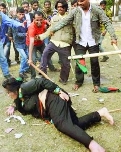 গত ২৯ ডিসেম্বর রোববার পুলিশের সহযোগিতায় সুপ্রিমকোর্টের অভ্যন্তরে ঢুকে বিএনপি সমর্থক আইনজীবীদের ওপর বর্বর হামলা চালায় সশস্ত্র আওয়ামী সন্ত্রাসীরা। টিভি পর্দায় এ নির্মম দৃশ্য সবাই দেখেছে। এ সময় দুই নারী আইনজীবীকে তারা নির্মমভাবে পিটিয়ে আহত করে। এদের একজন সিমকি ইমাম খান ও অন্যজন রেহানা আক্তার। এছাড়া আরও অন্তত ২০ জন আহত হন। এই গণতান্ত্রিক দেশে নারী নির্যাতনের এ ঘটনায় দেশজুড়ে নিন্দার ঝড় চলছে। সবার মুখে একই কথা—এটা কি গণতন্ত্রের নমুনা? এর নাম কি নারী স্বাধীনতা?