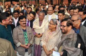 বুদ্ধিজীবী, শিল্পী, শিক্ষক, কবি-সাহিত্যিক, সাংবাদিকসহ বিভিন্ন শ্রেণী-পেশার বিশিষ্ট ব্যক্তিদের সঙ্গে শুভেচ্ছা বিনিময় করেছেন প্রধানমন্ত্রী শেখ হাসিনা। শুক্রবার বিকালে প্রধানমন্ত্রীর সরকারি বাসভবন গণভবনে আয়োজিত এ অনুষ্ঠানে বিশিষ্টজনরা অংশ নেন। বিকাল থেকে সন্ধ্যা পর্যন্ত চলা অনুষ্ঠানে সাংস্কৃতিক পরিবেশনাও ছিল। অনুষ্ঠানের শুরুতেই প্রধানমন্ত্রী আমন্ত্রিত অতিথিদের সঙ্গে পুরো প্যান্ডেলে ঘুরে ঘুরে কুশল বিনিময় করেন। এরপর সবার সঙ্গে সাংস্কৃতিক অনুষ্ঠান উপভোগ করেন।