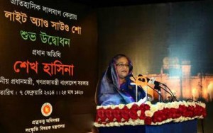 রাজধানীর ঐতিহাসিক নিদর্শন লালবাগ কেল্লায় শুক্রবার সাউন্ড ও লাইট শো উদ্বোধনের মধ্য দিয়ে দেশ প্রযুক্তির নয়াদিগন্তে প্রবেশ করল। প্রধানমন্ত্রী শেখ হাসিনা ঐতিহাসিক লালবাগ কেল্লায় আসা পরিদর্শক ও পর্যটকদের জন্য এটি নতুন আকর্ষণ হবে বলে আশা প্রকাশের মধ্য দিয়ে গতকাল সন্ধ্যায় শো’র আনুষ্ঠানিক উদ্বোধন ঘোষণা করেন। প্রধানমন্ত্রী বলেন, দর্শক আলো-আঁধারির পরিবেশে খুবই মনোযোগের সঙ্গে শতাব্দীর পুরাতন ইতিহাসের ধারাবাহিকতা জানতে পারবে।