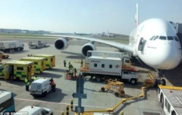বিমানে ৬০ শিশু অসুস্থ হয়ে পড়ায় সোমবার লন্ডনের হিথ্রো বিমানবন্দরে হুলস্থুল কাণ্ড ঘটে গেছে। বিমানটি রানওয়েতে অবতরণ করার সঙ্গে সঙ্গে তার চারপাশে এসে জড়ো হয় আটটি এম্বুলেন্স। এগুলোতে অসুস্থ শিশুদের নিয়ে উচ্চঃস্বরে সাইরেন বাজিয়ে ছুটে চলে হাসপাতালের পথে। লন্ডন এম্বুলেন্স সার্ভিস নিশ্চিত করেছে যে, ঘটনাস্থলেই চিকিৎসা দেয়া হয়েছে অসুস্থদের। তাছাড়া বিমানে থাকা অবস্থায় তারা বমি ও ডায়রিয়ায় আক্রান্ত হলে বিমানেই তাদেরকে প্রাথমিক চিকিৎসা দেয়া হয়। বিমানটি হিথ্রোর মাটি স্পর্শ করা মাত্র সেখানে এম্বুলেন্স গিয়ে হাজির হয়। হাজির হয় ইমার্জেন্সি সংকেত দেয়া একটি মোটর সাইকেল। পশ্চিম লন্ডনের হিলিংটন হাসপাতালে ভর্তি করা হয় ১১টি শিশুকে। পরে তাদেরকে ছেড়ে দেয়া হয়। অসুস্থ ওই শিশুরা দক্ষিণ আফ্রিকার রাজধানী কেপটাউনে কনসার্টে পারফরম করে দেশে ফিরছিল। দুবাই থেকে তাদের বহনকারী বিমানটি হিথ্রোর উদ্দেশে উড্ডয়নের পর শিশুরা অসুস্থ হয়ে পড়ে। কি কারণে এমনটা হয়েছে তা কেউ বলতে পারছে না। তাদেরকে বহন করছিল এমিরেটস এয়ারলাইন্সের এয়ারবাস এ-৩৮০।