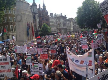 ২০০৩ সালে ইরাক যুদ্ধের সময় লন্ডনের রাস্তায় প্রতিবাদ করতে নেমে এসেছিলেন ১ মিলিয়ন মানুষ। এবার গাজা হামলার প্রতিবাদে আবারো তারা জানিয়েছেণ জোরালো প্রতিবাদ। ইউরোপের সর্ববৃহৎ ট্রেড ইউনিয়ন সংগঠন ইউনাইট দ্যা ইউনিয়ন, ইউনিসন, রাজনৈতিক দল সোসালিস্ট পার্টি, প্যালেস্টাইন সলিডারিটি ক্যাম্পেইন, মুসলিম কাউন্সিল অব ব্রিটেন, ইসলামিক ফোরাম অব ইউরোপসহ কয়েক শতাধিক ট্রেড ইউনিয়ন, চ্যারটি সংগঠন ও মানবাধিকার সংগঠনগুলোর প্রতিনিধিরা অংশ নেন প্রতিবাদ সমাবেশে।