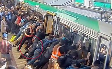 অস্ট্রেলিয়ার ব্যস্ত স্টেশন। ট্রেন ঢুকল প্লাটফর্মে। হঠাৎ সবাই খেয়াল করলেন ট্রেন ও প্লাটফর্মের মাঝে এক ব্যক্তির পা আটকে গিয়েছে। যন্ত্রণায় ছটফট করছেন ওই ব্যক্তি। এগিয়ে এলেন স্টেশনের সব যাত্রী।