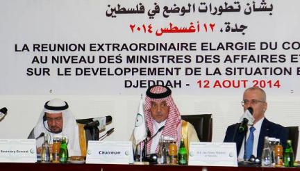 তিনি গাজায় যুদ্ধ বন্ধ ও ইসরাইলি অবরোধ প্রত্যাহারে মিসরের মধ্যস্থতায় চলমান প্রচেষ্টাকে সহযোগিতার আহ্বান জানান। একই সাথে তিনি ইসরাইলকে সতর্ক করে দিয়ে বলেন, ফিলিস্তিনিদের সাথে শান্তিচুক্তি ছাড়া জাতি হিসেবে তাদের অস্তিত্ব বিলীন হয়ে যাবে।