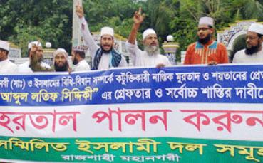 লতিফ সিদ্দিকীর সর্বোচ্চ শাস্তির দাবিতে সম্মিলিত ইসলামি দলসমূহের ডাকা হরতালের সমর্থনে রাজধানীসহ দেশের বিভিন্ন স্থানে মিছিল ও পিকেটিং করেছেন নেতা-কর্মীরা।