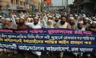 সোমবার জোহরের নামাজের পর বায়তুল মোকাররমের সামনে বিক্ষোভ মিছিল পরবর্তী সমাবেশে এ কথা বলেন সংগঠনটির ঢাকা মহানগর আহ্বায়ক মাওলানা নূর হোসাইন কাসেমী।