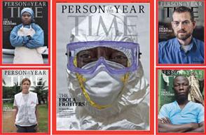 বিশ্বখ্যাত টাইম ম্যাগাজিনের পারসন অব দ্য ইয়ার নির্বাচিত হয়েছে ইবোলার বিরুদ্ধে লড়াই করা ব্যক্তিরা। কোন বিশেষ ব্যক্তি নন। এ লড়াইয়ে নিয়োজিত সব মেডিককে রাখা হয়েছে এতে। গতকাল টাইম ম্যাগজিন এ ঘোষণা দিয়েছে। এ পর্যন্ত এ রোগে কমপক্ষে ৬৩০০ মানুষ নিহত হয়েছেন। এর বিরুদ্ধে লড়াই করছেন যেসব চিকিৎসক, নার্স, সংশ্লিষ্টরা তাদেরকে করা হয়েছে পারসন অব দ্য ইয়ার। এখানে উল্লেখ্য, ইবোলা ছড়িয়ে পড়েছে লাইবেরিয়া, গায়েনা, সিয়েরা লিয়ন, নাইজেরিয়া, মালি, স্পেনে। জার্মানি ও যুক্তরাষ্ট্রেও দেখা দিয়েছে ইবোলা। টাইম ম্যাগাজিনের সম্পাদক ন্যান্সি গিবস এক ঘোষণায় বলেছেন, এসব মেডিকসের জন্য বাকি বিশ্বের মানুষ এখনও শান্তিতে ঘুমাতে পারছে। এসব মেডিকস ক্লান্তিহীনভাবে যে সাহস দেখিয়ে যাচ্ছেন, মানুষকে ঝুঁকি সম্পর্কে অবহিত করছেন তাদেরকে করা হয়েছে পারসন অব দ্যা ইয়ার।