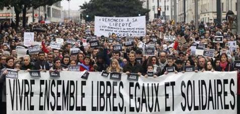 রাজধানী প্যারিস ও এর আশাপাশে তিনদিন ধরে চালানো প্রাণঘাতী হামলার প্রতিবাদে ফ্রান্সজুড়ে আয়োজিত মিছিলগুলোয় মানুষের ঢল নেমেছিল। প্যারিস, অর্লেন্স, নিস, পাউ, তুলুজ ও ন্যানেতসের মতো বড় বড় শহরগুলোসহ সারা দেশে প্রায় ৭ লাখ মানুষ এসব মিছিলে অংশ নিয়েছে বলে জানিয়েছে বিবিসি।