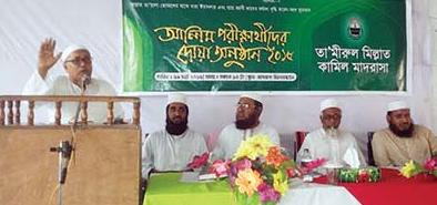 গত রোববার রাজধানীর মিরহাজীরবাগস্থ তা’মীরুল মিল্লাত কামিল মাদ্রাসার মূল ক্যাম্পাসে ২০১৫ সালের আলিম পরীক্ষার্থীদের জন্যে এক দোয়ার মাহফিল অনুষ্ঠিত হয়। অনুষ্ঠানে প্রধান অতিথি ছিলেন মাদরাসার অধ্যক্ষ মাওলানা যাইনুল আবেদীন। তিনি বলেন, মুসলিম উম্মার দায়িত্ব মাদরাসার ছাত্রদেরকেই কাঁধে তুলে নিতে হবে। তিনি আরো বলেন, বাংলাদেশসহ সারা বিশ্বের মুসলমানরা আজ চরমভাবে নির্যাতিত হচ্ছে। মুসলমানদের এই কঠিন পরিস্থিতি থেকে উত্তরণের জন্য মাদরাসার ছাত্রদেরকে কাণ্ডারীর ভূমিকা পালন করতে হবে। প্রতিনিয়ত মুসলমানদের জন্য আল্লাহ্র কাছে দোয়া করতে হবে।