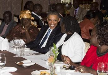 এ সময় তারা উভয়ে উষ্ণ আলিঙ্গন করেন। এরপর প্রথম কৃষ্ণাঙ্গ মার্কিন প্রেসিডেন্ট তার হোটেলে পৌঁছান। সেখানে তার বর্ধিত পরিবারের আরো অনেক সদস্য অপেক্ষায় ছিলেন। ওবামা তাদের সাথে নৈশভোজ সারেন। এ সময় ওবামার সৎ-দাদি মামা সারাহ, যাকে ওবামা গ্র্যানি ডাকেন, সেখানে উপস্থিত ছিলেন। ওবামার বাবা কেনিয়ার নাগরিক ও পাইপ-ধূমপায়ী অর্থনীতিবিদ নাইরোবিতে মাত্র ৪৬ বছর বয়সে গাড়ি চাপায় মারা যান। ওবামার বয়স যখন দুই বছর তখন তিনি আমেরিকা থেকে কেনিয়া চলে যান।