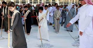 সৌদি আরবের মক্কার স্থানীয় স্কুলের একদল সৌভাগ্যবান শিক্ষার্থী কাবা শরিফ ও তাওয়াফের স্থান (মাতাফ) পরিষ্কার করার কাজে অংশ নেন। এ কাজে অংশ নেওয়ার জন্য মেধার ভিত্তিতে তাদের বাছাই করা হয়।