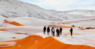 যেখানে তাপমাত্রা সব সময় ৪০ ডিগ্রি সেলসিয়াসের ওপরে থাকে সেখানে বরফ পড়ছে। চারদিকে বরফে ঢেকে গেছে। উত্তর দিকের হাওয়ার দাপটে রুক্ষ, শুষ্ক, তপ্ত মরুভূমি এখন হিম শীতল মরুভূমি। সোনালি বালুর উপর পড়েছে বরফের আস্তরণ। আশ্চর্যজনক ঘটনাই মনে হবে। তুষারপাতে যখন কাবু অন্যসব দেশ তখন সাহারার এই তুষারপাতেই খুশি সেখানকার অধিবাসীরা।