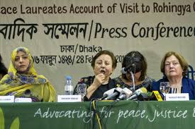 রোহিঙ্গাদের নির্মূল করতে পরিকল্পিত গণহত্যা চালিছে মিয়ানমার সরকার। সেদেশের নেত্রী অং সান সু চি সেই হত্যার দায় কোনোভাবেই এড়াতে পারেন না বলে মন্তব্য করেছেন শান্তিতে নোবেল জয়ী তিন নারী।