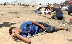 ইসরাইলি সেনাদের ছোড়া টিয়ার গ্যাসের একটি শেল হাতেম আবু সাবলা নামে এক বিক্ষোভকারীর নাকের পাশ দিয়ে চামড়া ভেদ করে গালের ভেতর ঢুকে যায়। বার্তা সংস্থা রয়টার্সের এক আলোকচিত্রী আবু সাবলার ঠিক ওই মুহূর্তের ছবি তুলতে সক্ষম হন। ছবিতে দেখা যায়, আবু সাবলার গালের ভেতর ঢুকে পড়া টিয়ার গ্যাসের শেল থেকে ধোঁয়া বেরুচ্ছে। তার টি-শার্ট রক্তে লাল হয়ে উঠছে। একটু পরপরই ২৩ বছরের এই তরুণ মাটিতে লুটিয়ে পড়েন। আবু সাবলাকে গাজার একটি হাসপাতালে ভর্তি করা হয়েছে। অস্ত্রোপচার করে তার মুখের ভেতর থেকে টিয়ার গ্যাসের শেলটি বের করা হলেও তার অবস্থা আশঙ্কাজনক বলে জানান চিকিৎসকরা। তাকে লাইফ সাপোর্টে রাখা হয়েছে। এদিন নিহতদের মধ্যে তিনজন তরুণ এবং অন্যজন ১৫ বছরের এক কিশোর। প্রায় ৬২০ জন আহত হয়েছেন, যাদের মধ্যে শতাধিক গুলিবিদ্ধ বলে জানান গাজার চিকিৎসকরা।