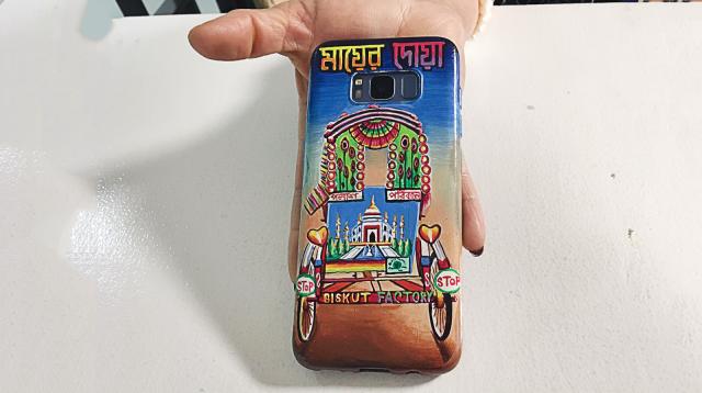 খাপটিতে বাংলাদেশের রিকশাচিত্রের লোকজ ধারাতেই নকশা আঁকা হয়েছে। মার্শা বার্নিকাটের ফোনের সেই খাপের পূর্ণ ছবিতে মায়ের দোয়ার নিচে রঙিন এক রিকশা দেখা যায় পেছন দিক থেকে। নিচে ইংরেজিতে লেখা ‘Biskut Factory’। এর মানে বিস্কুট ফ্যাক্টরি স্মার্টফোনের এই খাপটির নকশা করেছে।