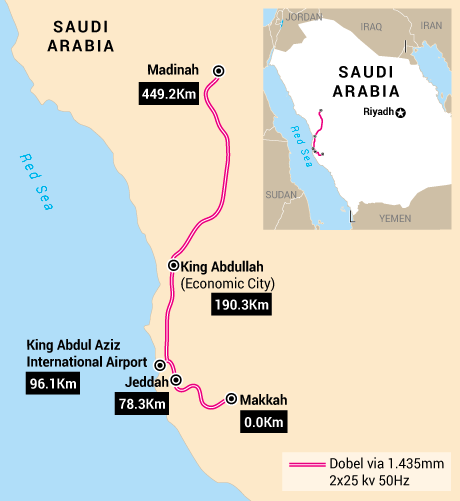 পর্যটক, বিশেষ করে হাজি ও ওমরা পালনকারীর সংখ্যা বৃদ্ধি এবং তাদের ভ্রমণ সহজ ও আরামদায়ক করতে পবিত্র নগরী মক্কা ও মদিনার মধ্যে দ্রুতগতির ইলেক্ট্রিক ট্রেন সার্ভিস চালু করেছে সৌদি সরকার। এর ফলে মক্কা থেকে মদিনা যেতে কিংবা আসতে আগের চেয়ে প্রায় তিন ঘণ্টা সময় কম লাগবে। সৌদি বাদশা সালমান মঙ্গলবার এ ট্রেন উদ্বোধন করেন।