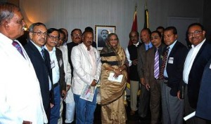 প্রতিনিধিদলে ছিলেন কমান্ডার নূরনবী, আব্দুল মুকিত চৌধুরী, মাহবুবুর রহমান, আবুল মনসুর খান, শফিকুল ইসলাম, রাশেদ আহমেদ, লাবলু আনসার, মোজাহিদুল ইসলাম, আবু বক্কর সিদ্দিক প্রমুখ। প্রধানমন্ত্রীর ডেপুটি প্রেস সেক্রেটারি আশরাফুল আলম খোকন এ বৈঠকের সমন্বয় করেন। এ সময় রাষ্ট্রদূত ড. এ কে এ মোমেন সেখানে ছিলেন। এর পরই শেখ হাসিনা জাতিসঙ্ঘে বাংলাদেশের স্থায়ী প্রতিনিধির জন্য সম্প্রতি ক্রয় করা বাসভবন পরিদর্শন করেন। সেখানে রাষ্ট্রদূত ড. এ কে এ মোমেনের আমন্ত্রণে প্রধানমন্ত্রীর সফরসঙ্গী ও প্রবাসের বিশিষ্টজনেরাও ছিলেন। এ সময় প্রধানমন্ত্রী জানতে চান, নিউ ইয়র্কে বাংলাদেশ কন্স্যুলেটের ভবন কেনার কী হলো। পাশে বসা পররাষ্ট্রমন্ত্রী ডা. দীপু মনি প্রধানমন্ত্রীকে জানান, ভবন খোঁজা হচ্ছে। চার-পাঁচটি মন্ত্রণালয়ের সমন্বয় হলেই সেটি ক্রয় করা সম্ভব হচ্ছে। যদিও নিউ ইয়র্কে বাংলাদেশের কন্সাল জেনারেল মো: মনিরুল ইসলাম ইতঃপূর্বে মিডিয়াকে অবহিত করেন যে, নিজস্ব ভবন ক্রয়ের কোনো উদ্যোগ এখন পর্যন্ত নেয়া হয়নি। নিউ ইয়র্ক অঞ্চলে তিন লাধিক বাংলাদেশীর বহু পুরনো দাবি হচ্ছে কন্সুলেটের নিজস্ব ভবন ক্রয়ের মধ্য দিয়ে ‘বাংলাদেশ সেন্টার’ স্থাপনের। -এনা নিউ ইয়র্ক
