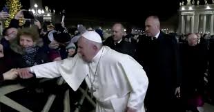 সিএনএন ও গার্ডিয়ানের প্রতিবেদনে বলা হয়েছে, পোপ ফ্রান্সিস হাত নেড়ে নেড়ে সবাইকে নতুন বছরের অভিনন্দন জানাচ্ছিলেন। এসময় এক নারী পোপ ফ্রান্সিসের হাত ধরে জোর করে তার দিকে টেনে নিয়ে যায়। এতে খানিকটা ক্ষিপ্ত হন পোপ ফ্রান্সিস।