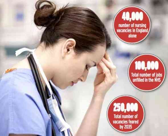 ন্যাশনাল হেলথ সার্ভিস (এনইচএস) এ প্রায় ৪০,০০০ হাজার নার্সের ঘাটতি রয়েছে। এই সমস্যা শীঘ্রই সমাধান করা সম্ভব নয়। এই সীমিত সংখ্যক নার্সদের নিয়ে যথাযথভাবে স্বাস্থ্যসেবা প্রদান করা সত্যিই অসম্ভব এবং কষ্টকর।
