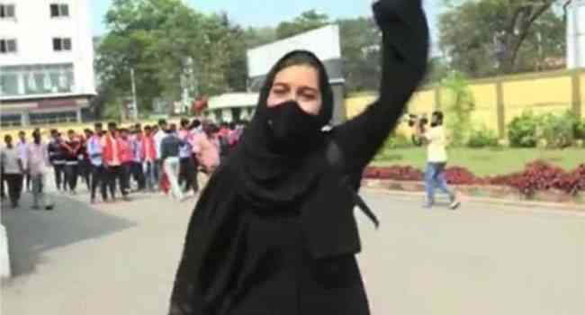 আল্লাহু আকবার স্লোগানে একাই উগ্রবাদীদের জবাব হিজাব পরিহিতা ছাত্রীর