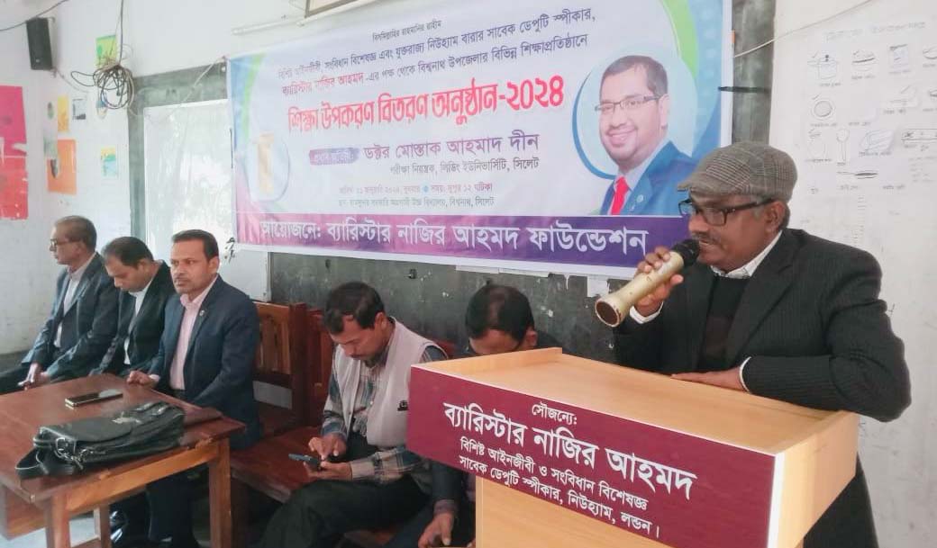 ব্যারিস্টার নাজির আহমদের পক্ষ থেকে বিশ্বনাথের ১৭টি শিক্ষা প্রতিষ্ঠানে শিক্ষা উপকরণ বিতরণ