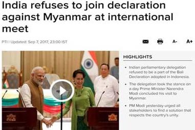 মিয়ানমারের সঙ্গে একাত্ম ভারত। রাখাইন প্রদেশে রোহিঙ্গাদের ওপর চালানো নির্যাতনের বিরুদ্ধে আন্তর্জাতিক এক সম্মেলনে গৃহীত এক ঘোষণা বা ডিক্লারেশন অনুমোদনে…