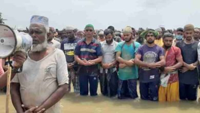 পানিতে দাঁড়িয়েই ঈদের নামাজ
