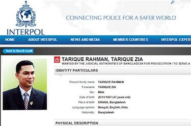 তারেক রহমানকে গ্রেফতারে ইন্টারপোলে নোটিশ