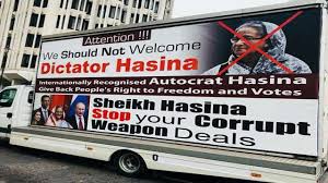 লন্ডন শহর ঘুরছে শেখ হাসিনা বিরোধী প্রতিবাদী গাড়ি