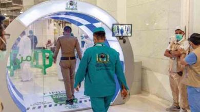 কাবাঘরের প্রবেশপথে অত্যাধুনিক জীবাণুমুক্তকরণ মেশিন